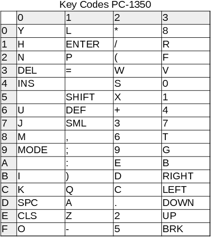 Hierzu kann 0D74/0D69 (PC-1360) bzw. 0333/0328 (PC-1350) genutzt werden.