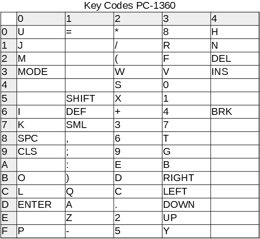 | 0436 | 00B5 | Tastaturabfrage (PC-1360: identisch zu 1E9C); siehe 46C0 ROM-Bank 0 |